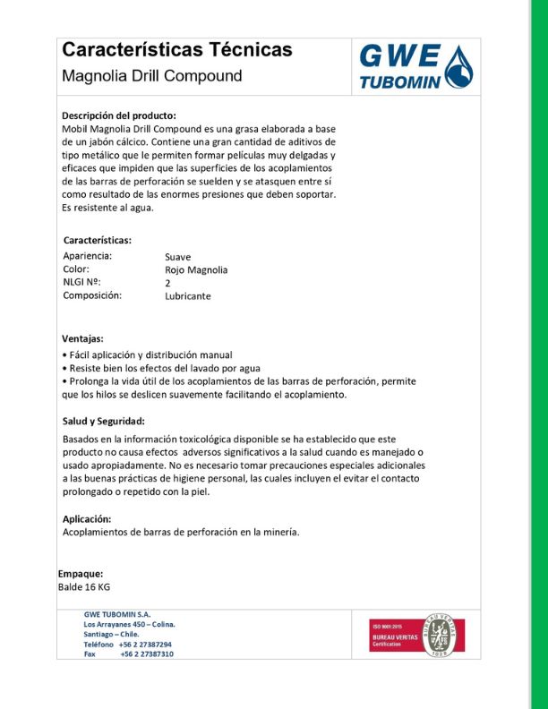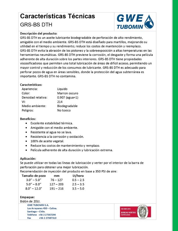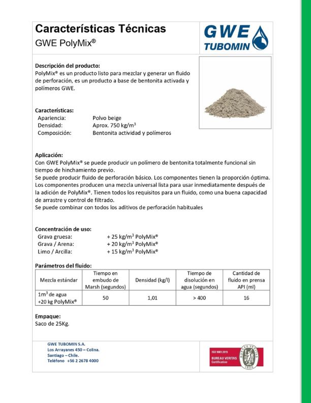 Aditivos de perforaciónCatálogos Catálogo Corporativo Descargar Aditivos Descargar Especificaciones Técnicas Bentonita Tixoton Descargar Bentonita pellet Compactonit 10/200 Descargar EMFLOC MRE Descargar GRS BK Descargar GRS-BS DTH Descargar GRS D TSSP Descargar GRS DET Descargar GRS Schmiermittel CD Descargar GWE-FOAM Descargar GWE PolyMix Descargar GWE PolyPile HD Descargar GWE PolyPile HD L Descargar IPR-007 Descargar Kit de análisis de lodos Descargar Magnolia Drill Compound Descargar SBF-Viscopol T Descargar SC XGUM Descargar Troptogel B Descargar